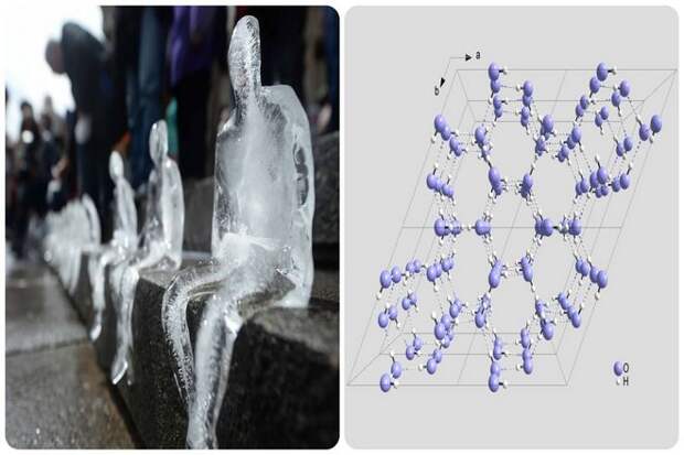 Если бы вы могли каким-то образом бросить кусок этого льда в стакан с жидкой водой, она бы испарилась. На молекулярном уровне высокое давление деформирует гексагональные связи. Заставляя молекулы H2O принимать форму ромбов, тетрагонов и других альтернативных геометрий.