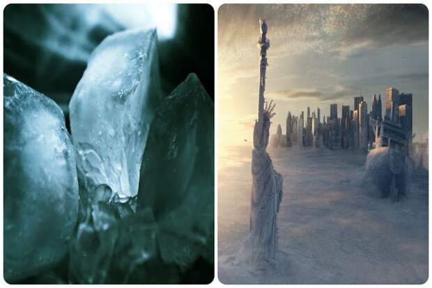 В 1963 году писатель-фантаст Курт Воннегут использовал в своем романе “Колыбель для кошки” вымышленную концепцию льда-IX. Кристаллического полиморфа льда, который остается стабильным при комнатной температуре. Лед-девять был формой воды, настолько стабильной, что он никогда не таял и кристаллизовал всю воду, к которой прикасался. Это была Эбола воды…